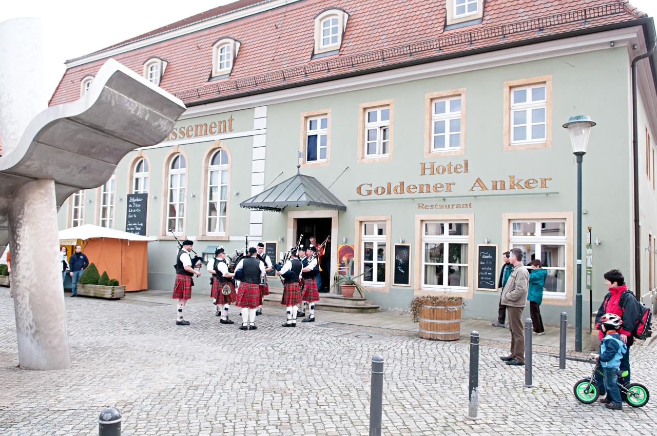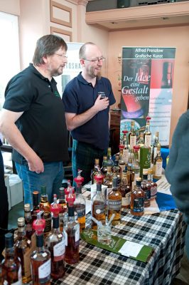 So sah es aus. Die erste Whisk(e)y Messe in Altkötzschenbroda/Radebeul. Zwei Tage roch es im Hotel Goldener Anker nach guten alten Whisky. „Die Schmiede“, der lokale Pub aus Altkötzschenbroda organisierte dieses „kulinarische“ Großereignis, welches in Sachsen noch seinesgleichen sucht. Whiskyhändler und -freunde aus ganz Deutschland präsentierten die verschiedensten Whiskys. So manch Rarität konnte verkostet werden und es wurde eine Menge gefachsimpelt. Zwischendurch erheiterten die Royal-Sulgemer Crown-Swamp-Pipers aus Bad Saulgau mit Scottish Pipes & Drums das Publikum. Der erste Tag wurde dann standesgemäß im Pub mit Livemusik der Band Flaxmill ausgeklungen. Am zweiten Tag habe ich nach einem guten alten Whisky gesucht, den ich mit nach Hause nehmen konnte zum späteren Kosten. Da habe ich gleichmal richtig an der Materie schnuppern können, wie komplex eigentlich dieses Thema ist. Am Ende habe ich dann doch einen guten Whisky gefunden: den 1973er Glengoyne Single Malt.